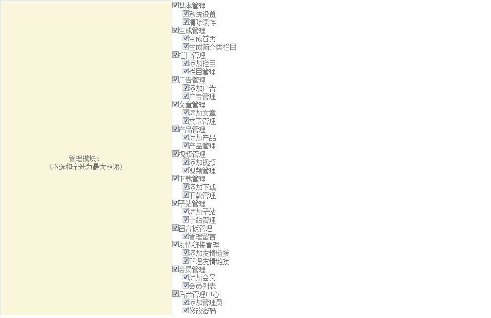 當我們需要添加管理員的時候,我們需要點擊添加管理員,然后將管理員的真實姓名、密碼、等信息進行完善后,在管理模塊中,勾上此管理員的一些權限,保存即可。